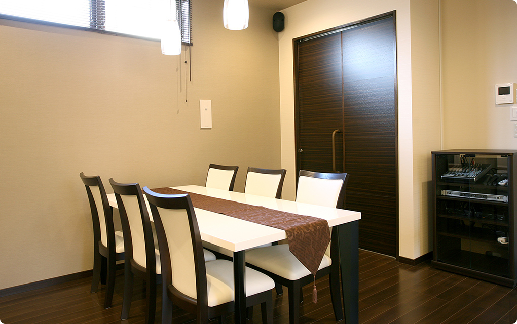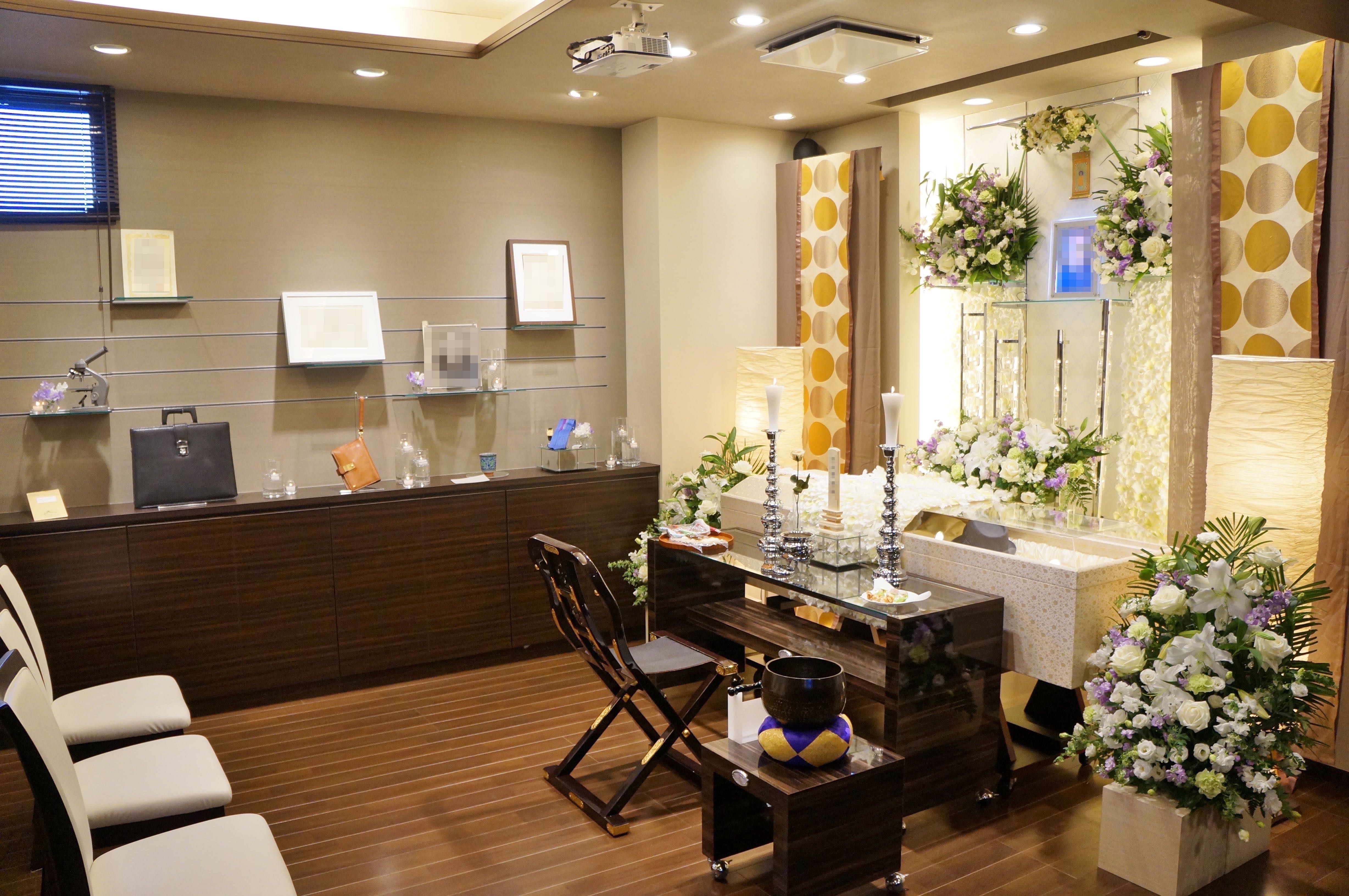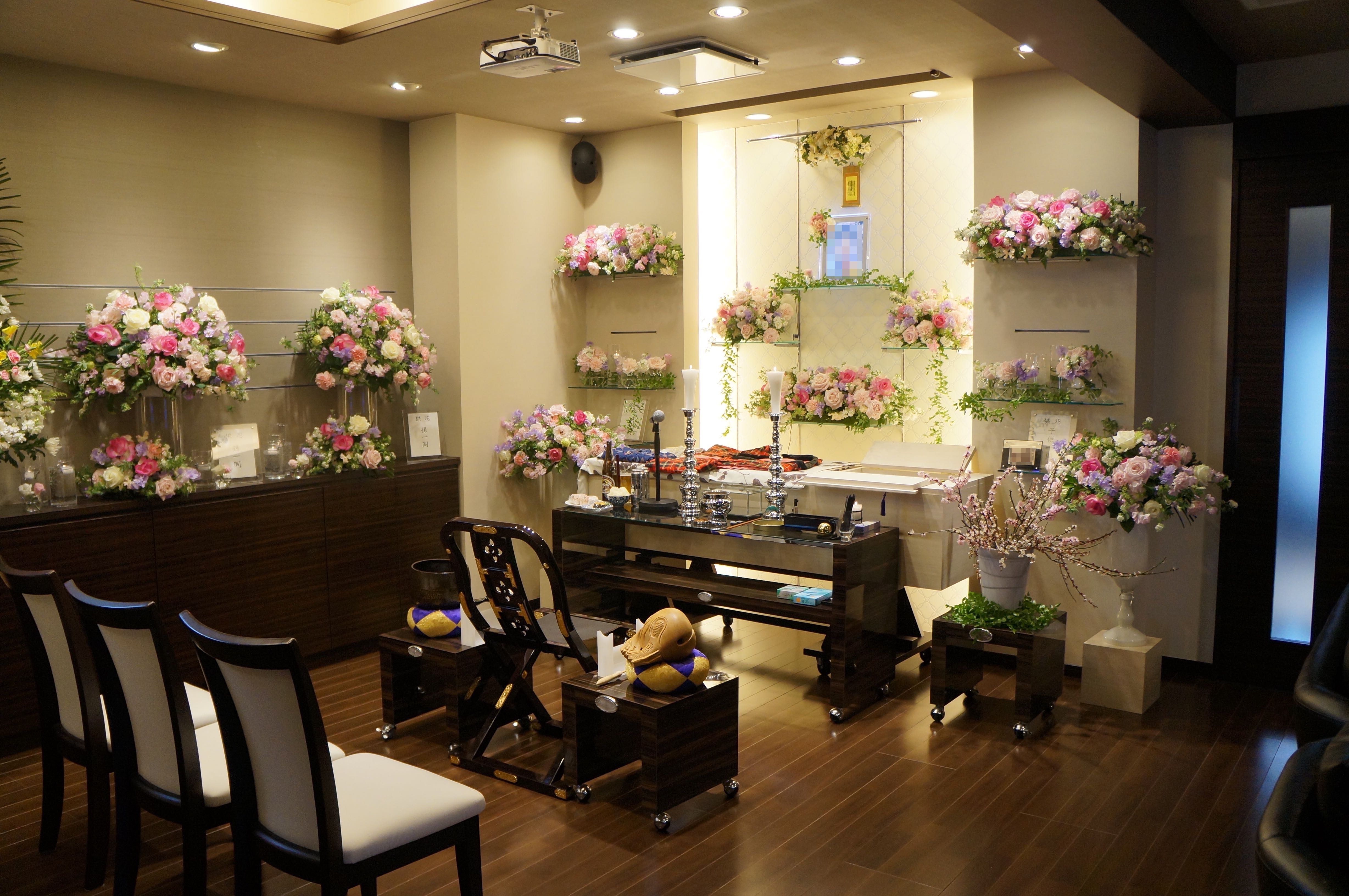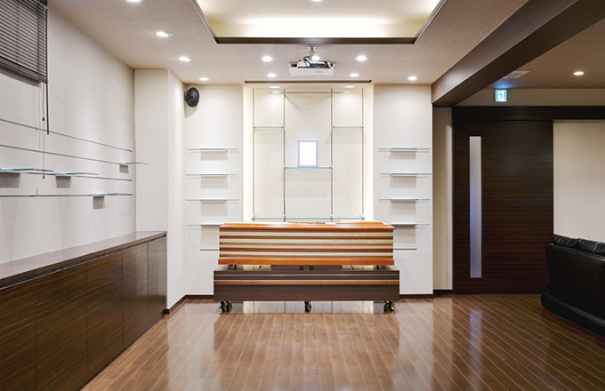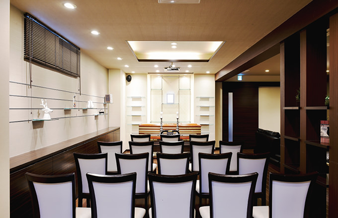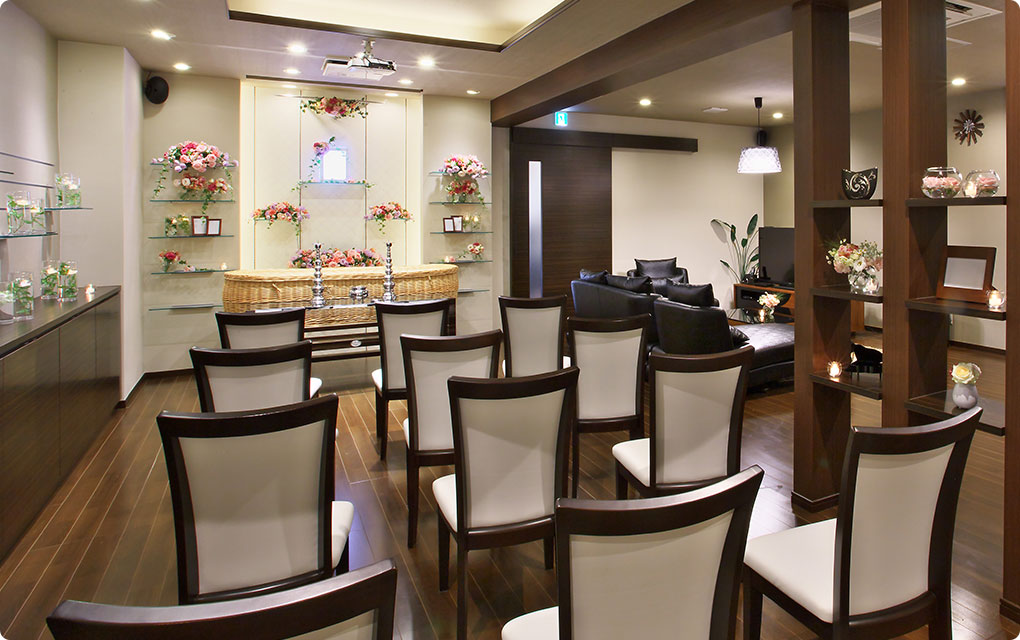 当式場は自宅の様な温かく落ち着ける空間と、葬儀場に必要な機能性を兼ね備える家族葬に特化した空間で安心して最期のお別れに集中していただけます。