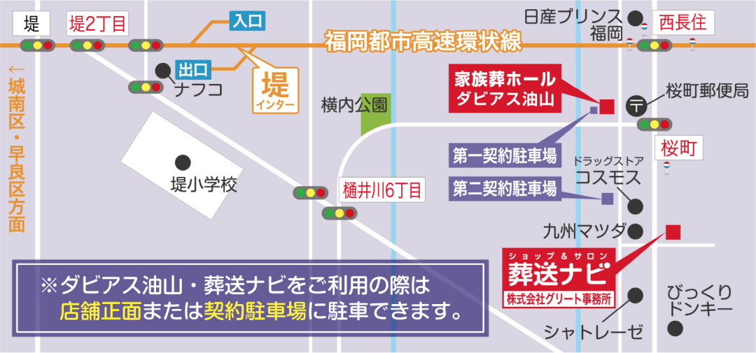 1. 福岡都市高速5号線「堤出口」下車