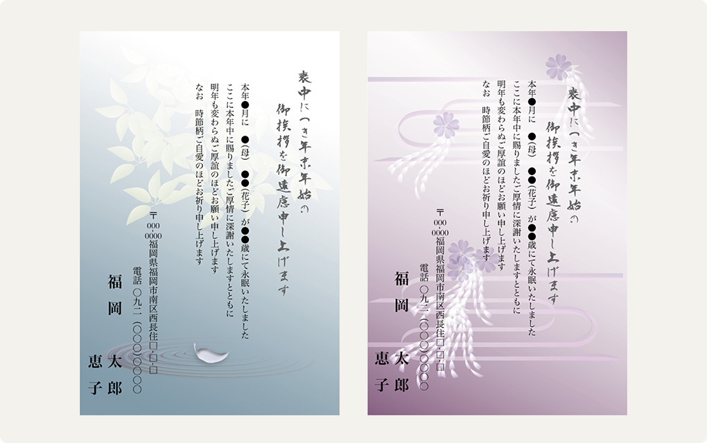 喪中ハガキや、ご逝去をお知らせするハガキの作成をお手伝いさせていただきます。