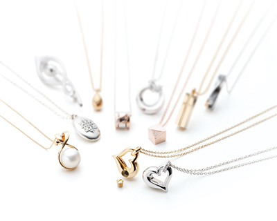 写真はもちろん、ご遺骨を納めるネックレス、コアボトル(分骨壷)など様々な種類があります。